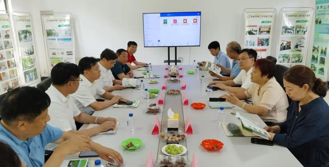 调研组一行观看了宣传片,巢旸总经理从碧根果树的本土化种植的科技探索、产业化平台建设和金土地的技术优势等方面作了介绍,汇报了公司未来发展的远景规划,并就常州市老科协与安康老科协联合开展的合作惠民项目,从科技助力碧根果产业在安康种植培育和示范推广,助力乡村绿色经济发展等情况作了详细汇报。调研组一行为企业扩大发展规模和拓宽市场提出了多项科学建议。