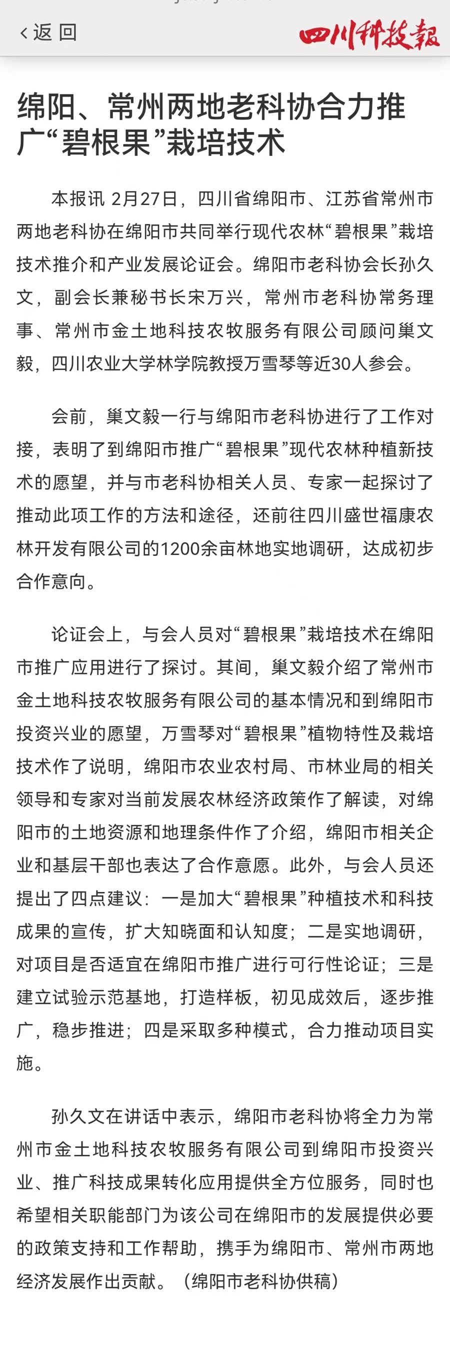 四川科技报 | 绵阳、常州两地老科协合力推广“碧根果”栽培技术