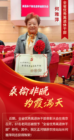 何雅萍,孟河镇原农技站站长,凭借专业特长攻克了美国薄壳山核桃(碧根果)在中国难结果、结果少、晚结果的难题,总结出薄壳山核桃本土化系列技术,其中获专利11项,利用碧根果种植技术扶贫,先后获得全国首批林草乡土专家、江苏省新时代“苏农匠”、中国老科协“突出奖”等荣誉称号。